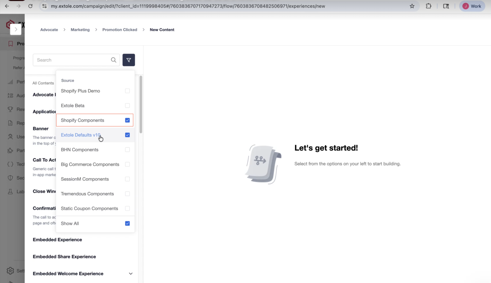 - First, add the Shopify Checkout Extension to your Extole campaign by selecting the