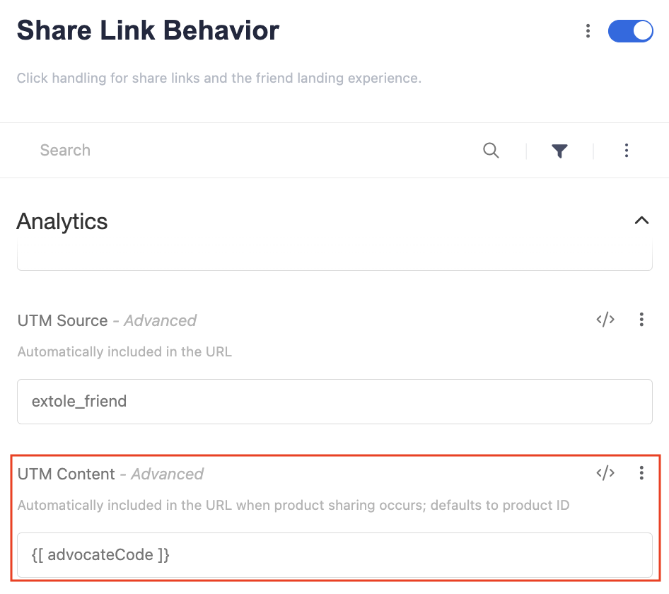 utm_contentparameter into your data layer. Map this parameter toadvocate_codein GTM. - In your Extole Flow Campaign, navigate to
